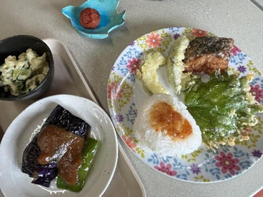 ▲ 一般社団法人長洞元気村で提供される地元の食材をふんだんに使った料理の数々:国際色豊かな学生の多様な食に対応できるようになったことが長続きの秘訣(右)