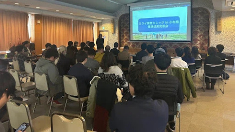 ▲ プログラム参加者が地域住民や関係者に成果を発表する様子右)